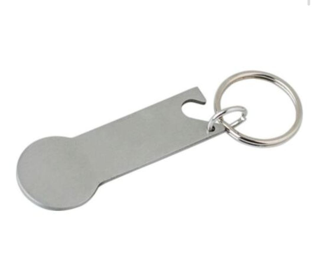 Dieser praktische Schlüsselanhänger aus robustem Edelstahl vereint gleich mehrere Funktionen in einem kompakten Design. Mit einem integrierten Einkaufswagenchip und Flaschenöffner bist du im Alltag immer bestens ausgestattet.
